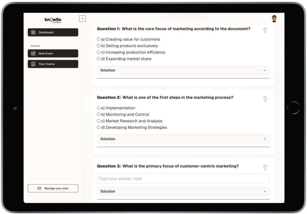 Knowlio helps students prepare for exams by generating mock exams tailored to course materials